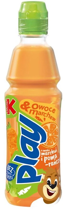 sok jabłkowy z zagęszczonego soku (65%), przeciery z: marchwi (18%), jabłek (8%) i bananów (4%), sok marchwiowy z zagęszczonego soku (3%), przecier truskawkowy (2%), aromaty, (...)